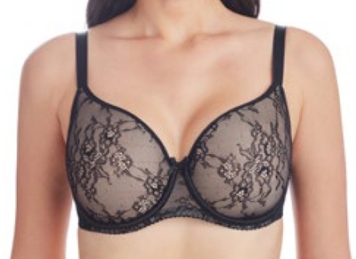 Бюстгальтер на каркасах. Формованные чашки из тканого, многослойного, формоустойчивого, пластичного материала нового поколения с внутренним слоем из мультифиламентной нити - монофила. Чашки покрыты кружевным формованным полотном.