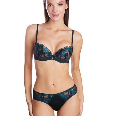Основной акцент коллекции сделан на роскошной мультиколорной вышивке, которая выполнена на тончайшей ажурной основе. Эта изюминка придает изделиям легкость и романтичность. Плавные линии и богатство рисунка вышивки гармонично сочетаются с лаконичными материалами, подчеркивая красоту каждого элемента.