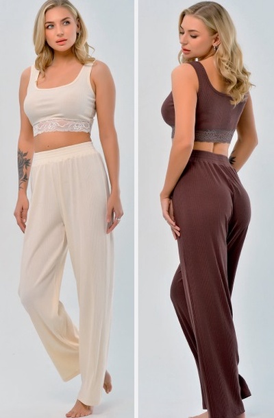 пояс и широкие, прямые штанины. Состав: 46% хлопок, 46% модал, 8% спандекс.