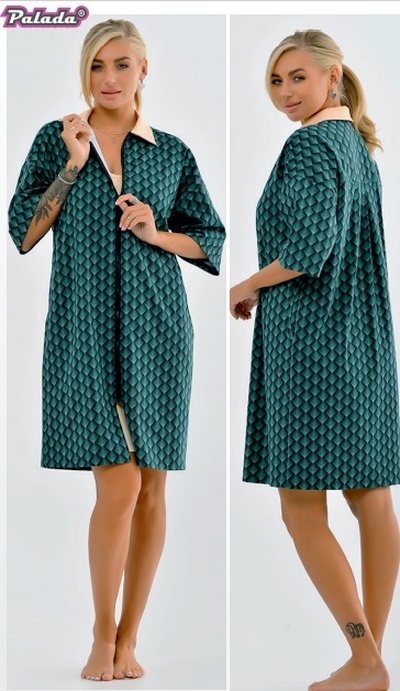 Халат- рубашка в стиле оверсайз, на молнии. Прямой и свободный