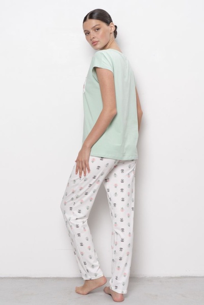 Брюки отличаются удобным свободным кроем, позволяющим наслаждаться покоем и отдыхом без малейшего дискомфорта. В боковых швах функциональные карманы. Благодаря мягкости ткани и тщательной обработке швов, этот комплект идеально подходит для отдыха дома, расслабления перед сном или утреннего пробуждения.