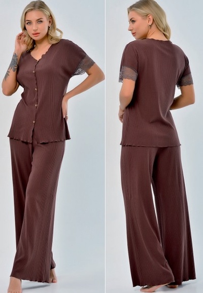 кружевной отделкой и брюк палаццо. Легкие широкие брюки с