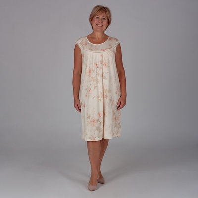 Сорочка в нежных сливочных оттенках с утончённым цветочным принтом, создающий элегантную визуальную текстуру. Трикотажное шелковистое вискозное полотно высокого качества. Состав: Вискоза-96%, ПУ-4%.
