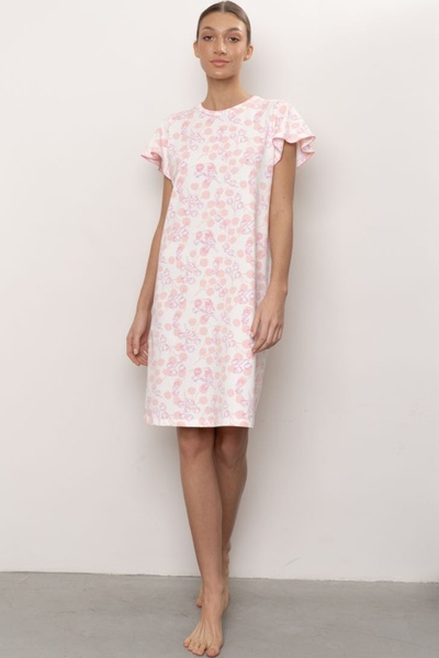 Нежная сорочка с круглым вырезом горловины, рукавами «крылышки» комфортной длины. Однотонные варианты декорированы тематическим принтом. Горловина и низ рукавов декорированы контрастным швом «мережка». Модель универсальна по назначению. Уместна как для сна, так и для домашнего комфорта. Состав: Хлопок 95%, Эластан 5%.