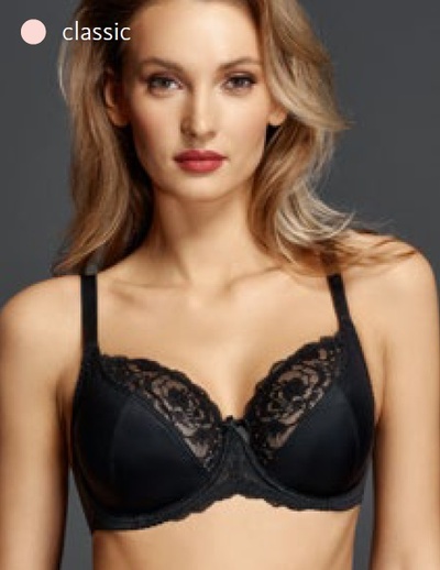 Бюстгальтер из эластичного и неэластичного трикотажного полотна и эластичного кружева. На каркасах. Тройное диагональное членение, упругие пластины в боковых деталях стана.
