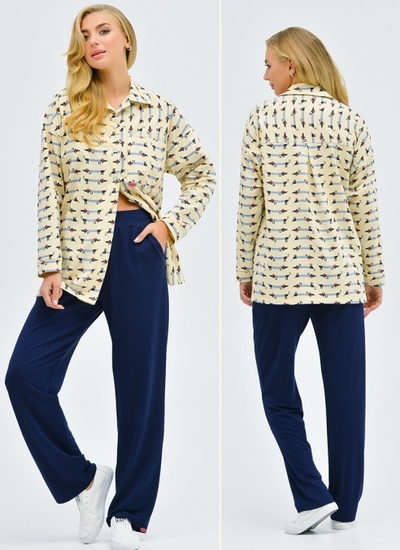 Рост модели 171 см. Состав рубашки: 95% хлопок, 5% эластан. Состав брюк: 95%вискоза, 5%эластан.