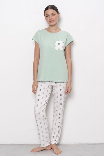 Брюки отличаются удобным свободным кроем, позволяющим наслаждаться покоем и отдыхом без малейшего дискомфорта. В боковых швах функциональные карманы. Благодаря мягкости ткани и тщательной обработке швов, этот комплект идеально подходит для отдыха дома, расслабления перед сном или утреннего пробуждения.