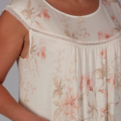Сорочка в нежных сливочных оттенках с утончённым цветочным принтом, создающий элегантную визуальную текстуру. Трикотажное шелковистое вискозное полотно высокого качества. Состав: Вискоза-96%, ПУ-4%.
