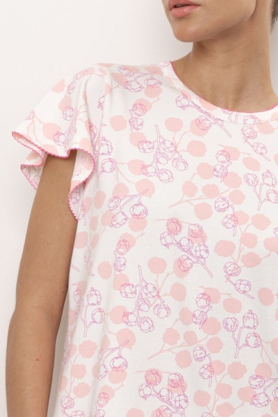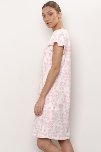 Нежная сорочка с круглым вырезом горловины, рукавами «крылышки» комфортной длины. Однотонные варианты декорированы тематическим принтом. Горловина и низ рукавов декорированы контрастным швом «мережка». Модель универсальна по назначению. Уместна как для сна, так и для домашнего комфорта. Состав: Хлопок 95%, Эластан 5%.