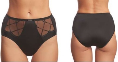 Трусы-слип, высокая линия талии. Выполнены из эффектной вышивки, имитирующей россыпь камней в сочетании с деликатным кружевным полотном и эластичным тактильным полотном с блеском. Особый шарм придают специально разработанные декоративные элементы, украшающие переднюю деталь трусиков.