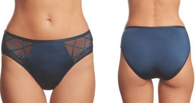 Трусы-кюлот, средняя линия талии плюс. Выполнены из эффектной вышивки, имитирующей россыпь камней в сочетании с деликатным кружевным полотном и эластичным тактильным полотном с блеском. Особый шарм придают специально разработанные декоративные элементы, украшающие переднюю деталь трусиков.